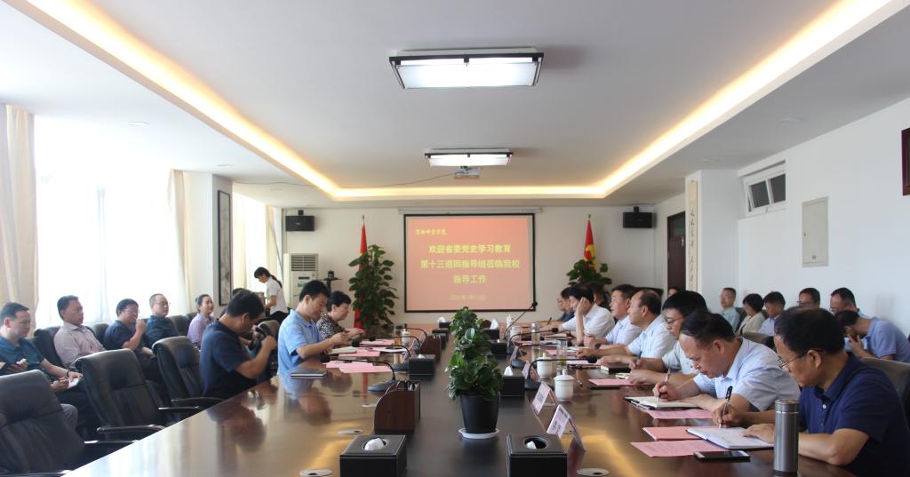 7月13日,省委党史学习教育第十三巡回指导组副组长陈新建,成员黄小丽、曹越一行莅临我校进行第二轮党史学习教育巡回指导。汇报会在学校厚德楼第二会议室召开。学校党委书记卓宇,校长赵曼,党委副书记任健,党委委员、副校长常青林及学校党史学习教育领导小组成员参加了汇报会。汇报会由校长赵曼主持。