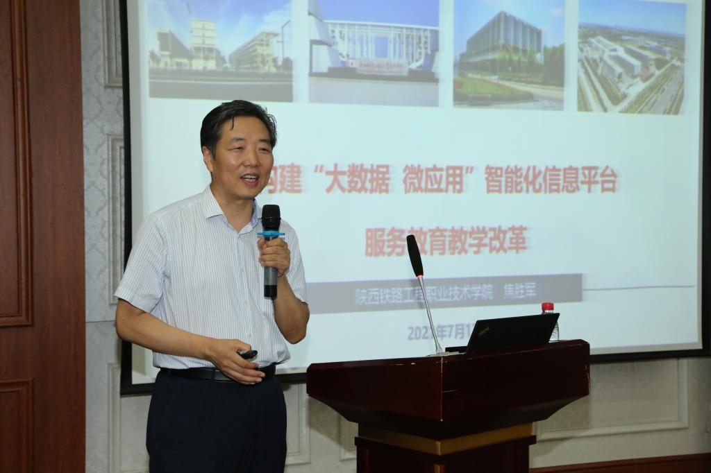 焦胜军教授作了题为《构建“大数据 微应用”智能信息平台服务教育教学改革》专题报告,他指出,信息化部门要做到“引导不主导,到位不越位”。他强调,平台建设要以教学为中心,信息化素养是推进工作的关键。