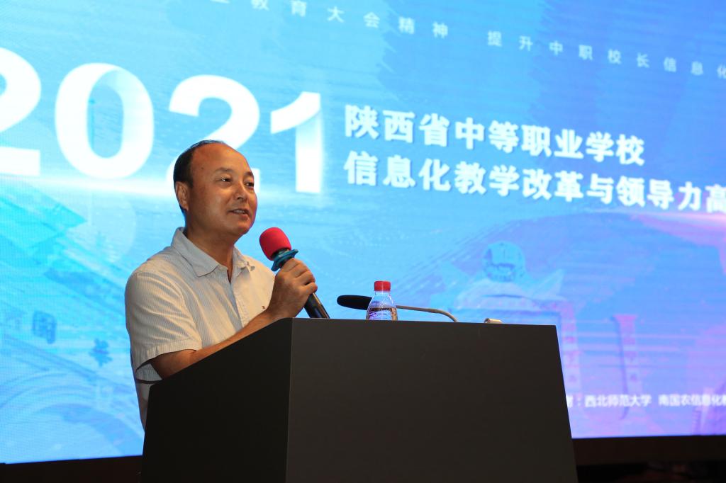 为贯彻全国职业教育大会精神,促进中职校信息化教学改革,提升中职校校长信息化领导力,7月17日,由南国农信息化教育发展基金会、清华大学教育研究院和我校联合举办,我校教育科学学院和清华大学教育研究院承办的“2021年陕西省中等职业学校信息化教学改革与领导力”高级研修班开班。