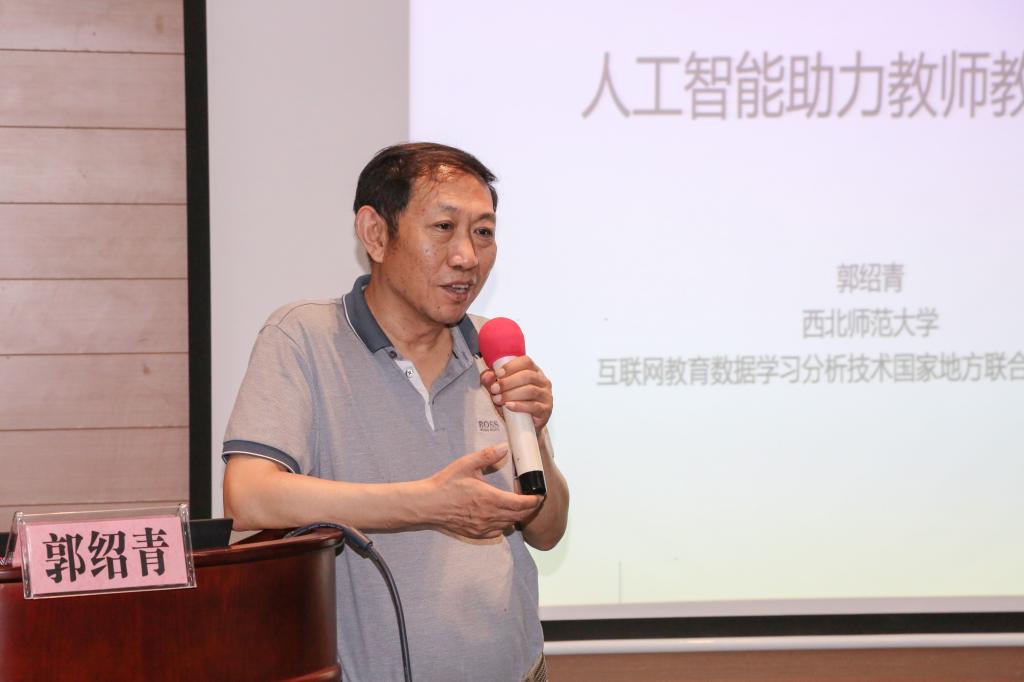 西北师范大学教育技术学院院长郭绍青教授作了题为《人工智能助力教师教学创新》的专题报告。从人工智能推动智能学习环境快速发展的视角,对人工智能推动教与学环境发展、教学构成要素变化、教师教学能力挑战进行了深入解读,对未来人工智能助力教师教学创新发展,提出了针对性的建议。