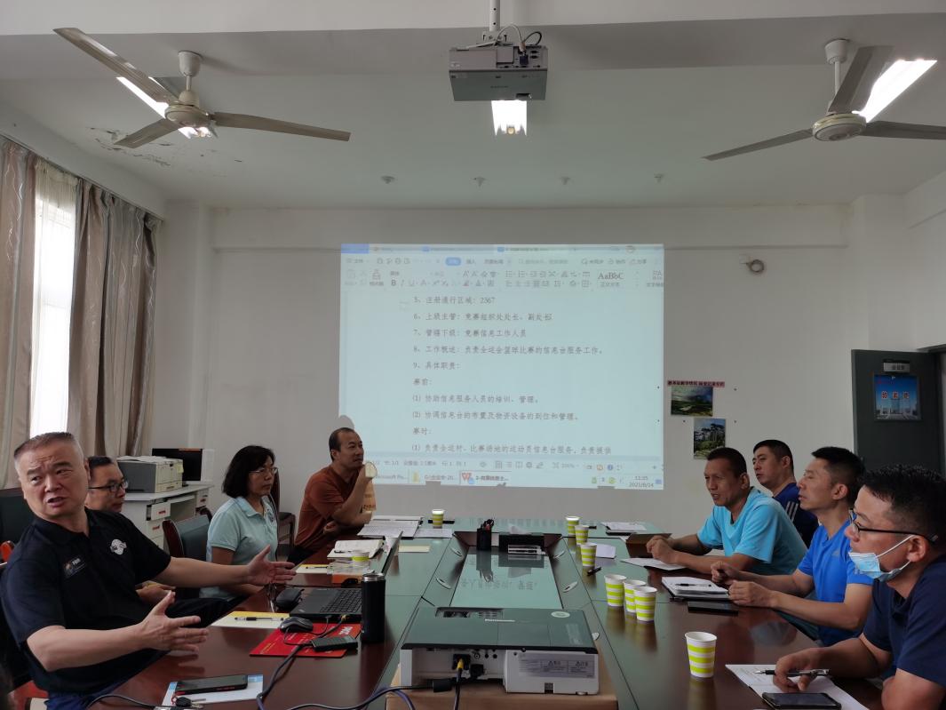 会上,周江安首先介绍了赛事日程安排,详细讲解了赛事运行流程,逐项梳理各个阶段、主要环节的工作安排,询问各职能处室负责人对工作职责、工作流程的掌握情况及各项筹备工作进展情况,解答各处室负责人的问题,强调各方面工作中的注意事项,重点对竞赛组织处各业务主管的工作职责、主要任务、注意事项分别进行了解读和指导。