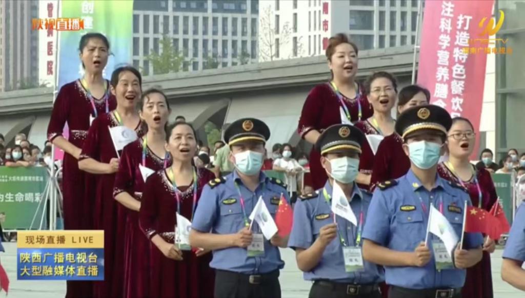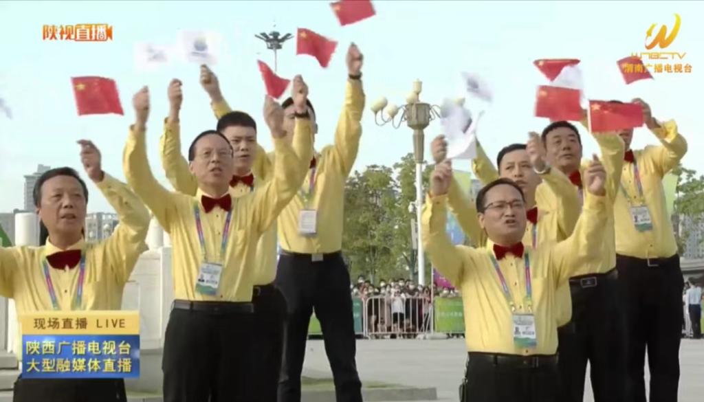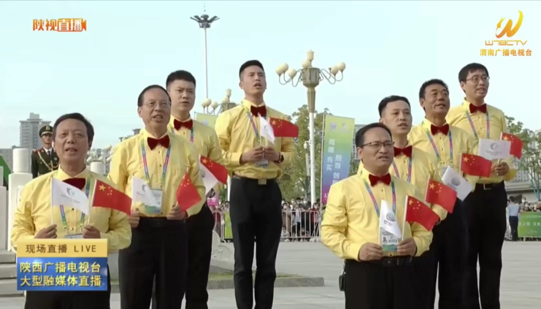 在渭南市民综合服务中心,起火仪式现场简约热烈,暖场节目展现出自由、奔放、活力。我校教师杨小渭、刘丽、赵铁流、马玉侠等参与的合唱表演热情饱满、激情高昂,带领全场观众感受全运氛围,为火炬传递摇旗呐喊、加油助威。