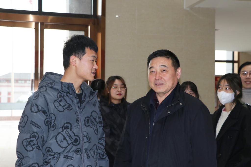 在观展现场,卓宇与传媒学院由空军某部退役复学的优秀学生杨韶烨进行了亲切交谈,询问学生复学后的学习情况,鼓励学生发挥军人退伍不褪色、退役不褪志的精神,协助学院做好征兵宣传,持续传递正能量,把不言败、肯攀登的精气神带到校园生活中来。