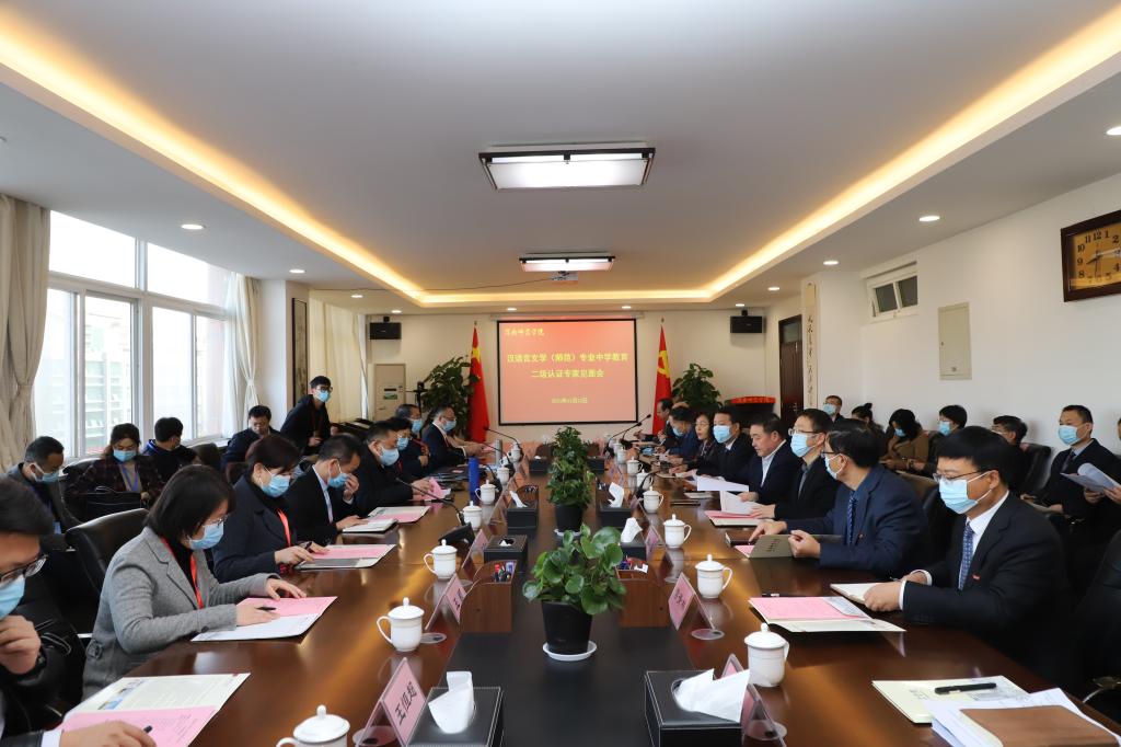 11月22日上午,专家见面会在学校厚德楼第二会议室举行。专家组全体成员,陕西省教育厅教师工作处处长王彬武,陕西省教育考试与评价研究会副秘书长王恒超,学校在校领导,相关职能部门、二级学院负责人,汉语言文学专业负责人及教师代表,参加了见面会。