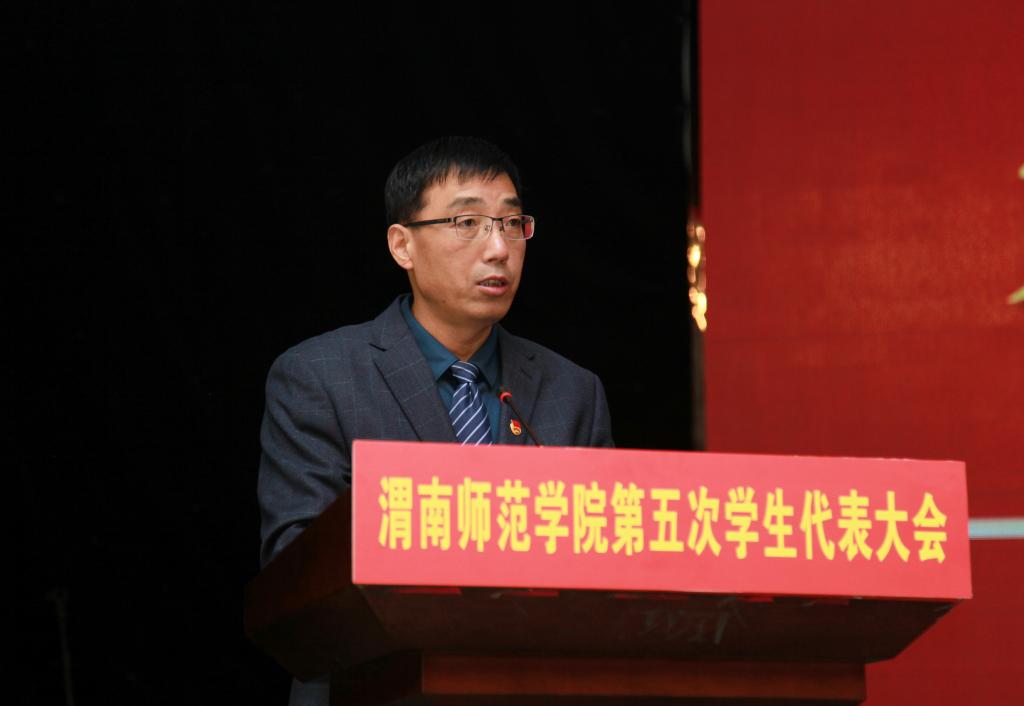 韩小卫代表学校党政和全体师生员工,向大会的召开表示祝贺。他肯定了第四次学代会以来,我校各级学生组织在各方面工作中做出的成绩。他希望全体青年学生和各级学生组织,要牢记初心使命,大力弘扬伟大的建党精神,全面理解新发展阶段、新发展理念、新发展格局,勇担时代重任和历史使命,做走在时代前列的奋进者、开拓者、奉献者,做中华民族伟大复兴的时代追梦者;要坚定理想信念,深入学习领会习近平新时代中国特色社会主义思想,学习习近平总书记关于青年工作的重要论述,不断增强“四个意识”、坚定“四个自信”、做到“两个维护”,做中国特色社会主义的坚定信仰者;要练就过硬本领,响应号召、牢记誓言,珍惜大好学习时光,求真学问,练真本领,做到融汇贯通,知行合一,在实践中接受教育,增长才干,做社会主义现代化建设的忠实实践者;要加强学团建设,各级学生组织要不断增强政治性、先进性和群众性,坚持问题导向,以改革创新精神直面学生工作的新情况、新挑战,广大学生干部要加强创新能力的培养,在服务学生思想成长、学业进步、解决难题上下工夫,实际行动赢得广大青年学生的尊重和信任,做新时代改革创新的有力奋进者。