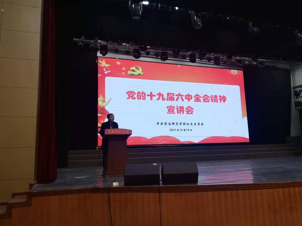 12月10日下午,机关党委在陶然楼演艺厅举行党的十九届六中全会精神宣讲会。党委书记卓宇,党委副书记、纪委书记、监察专员肖耀刚,党委副书记韩小卫,副校长卢爱刚作为普通党员参加宣讲会。宣讲会由机关党委书记王俊安主持。