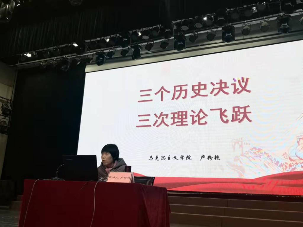 会上,我校党的十九届六中全会精神宣讲团成员、马克思主义学院教授卢粉艳,为与会人员作题为《三个历史决议 三次理论飞跃》全会精神学习辅导报告。报告从党的百年奋斗重大成就和历史经验、三个历史决议、三次理论飞跃等三方面,对全会精神进行了深刻阐释。