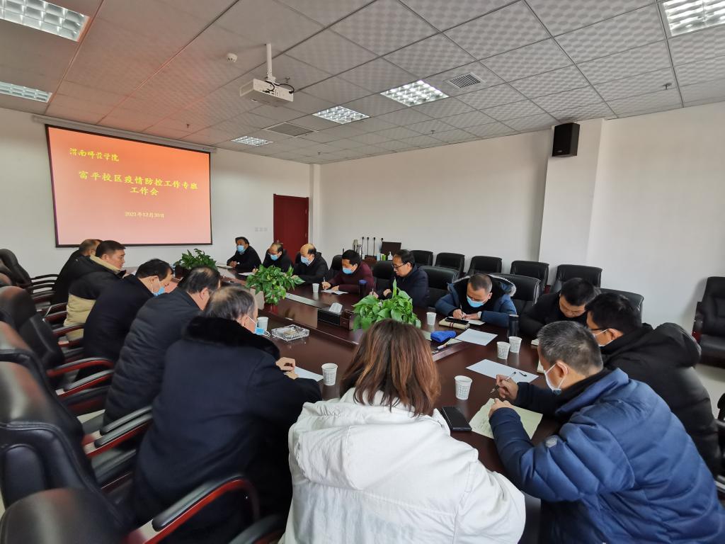 12月30日上午,富平校区召开疫情防控工作专班工作会议。党委书记、工作专班组长卓宇主持专题会议并讲话,党委委员、副校长、工作专班副组长卢爱刚,党委委员、组织部部长、工作专班副组长凌朝栋及工作专班全体成员参加此次会议。