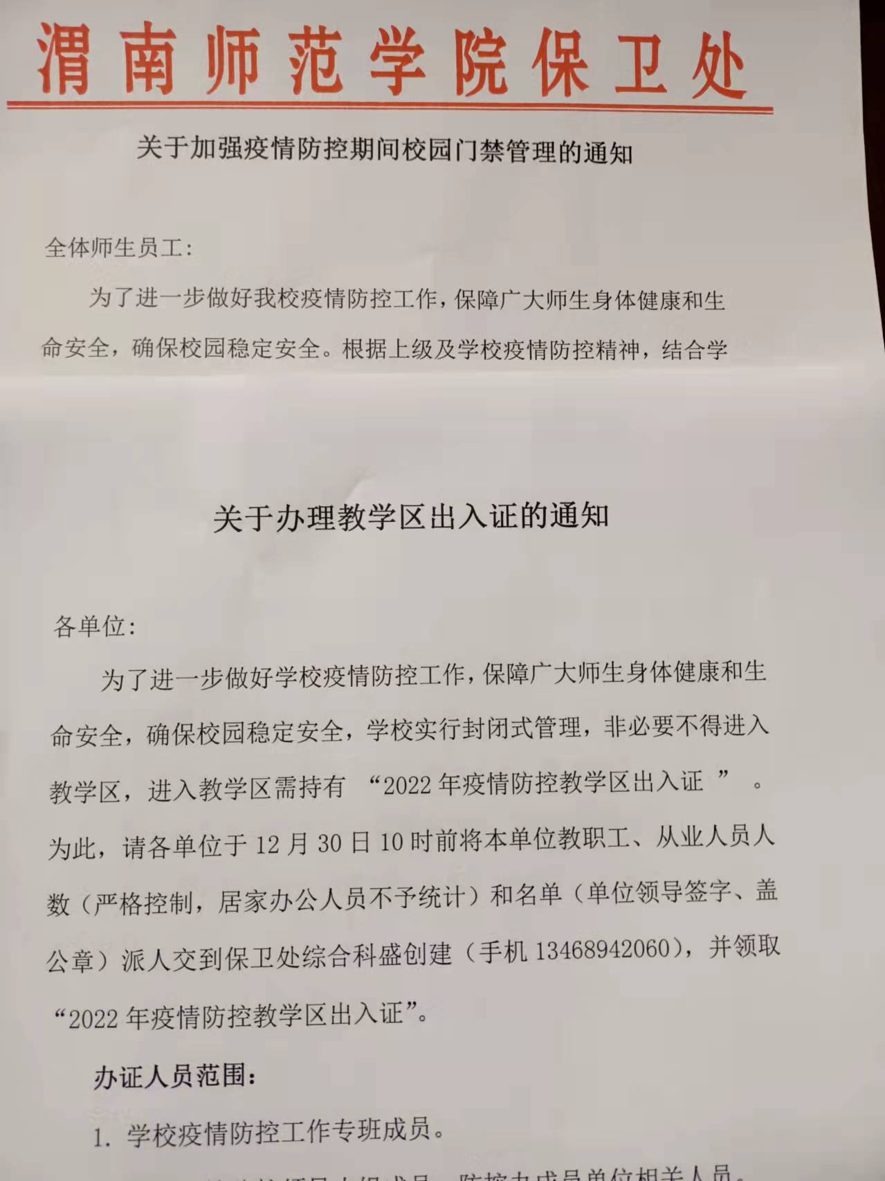 疫情就是命令,防控就是责任。本轮疫情发生后,保卫处紧急动员,第一时间召开紧急会议,启动校园疫情管控工作机制,结合国家、省、市和学校发布的疫情防控有关要求,接连发布并实施《关于疫情防控期间加强校园门禁管理的通知》、《关于办理教学区出入证的通知》等,对车辆、人员和各出入口实施管控,切实把各项工作抓实、抓细、抓落地;不断强化联防联动机制,积极推动警校联动在突发公共卫生事件应对中的深化,确保校园的安全稳定。