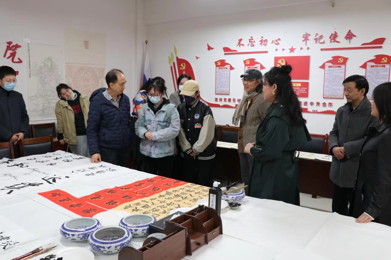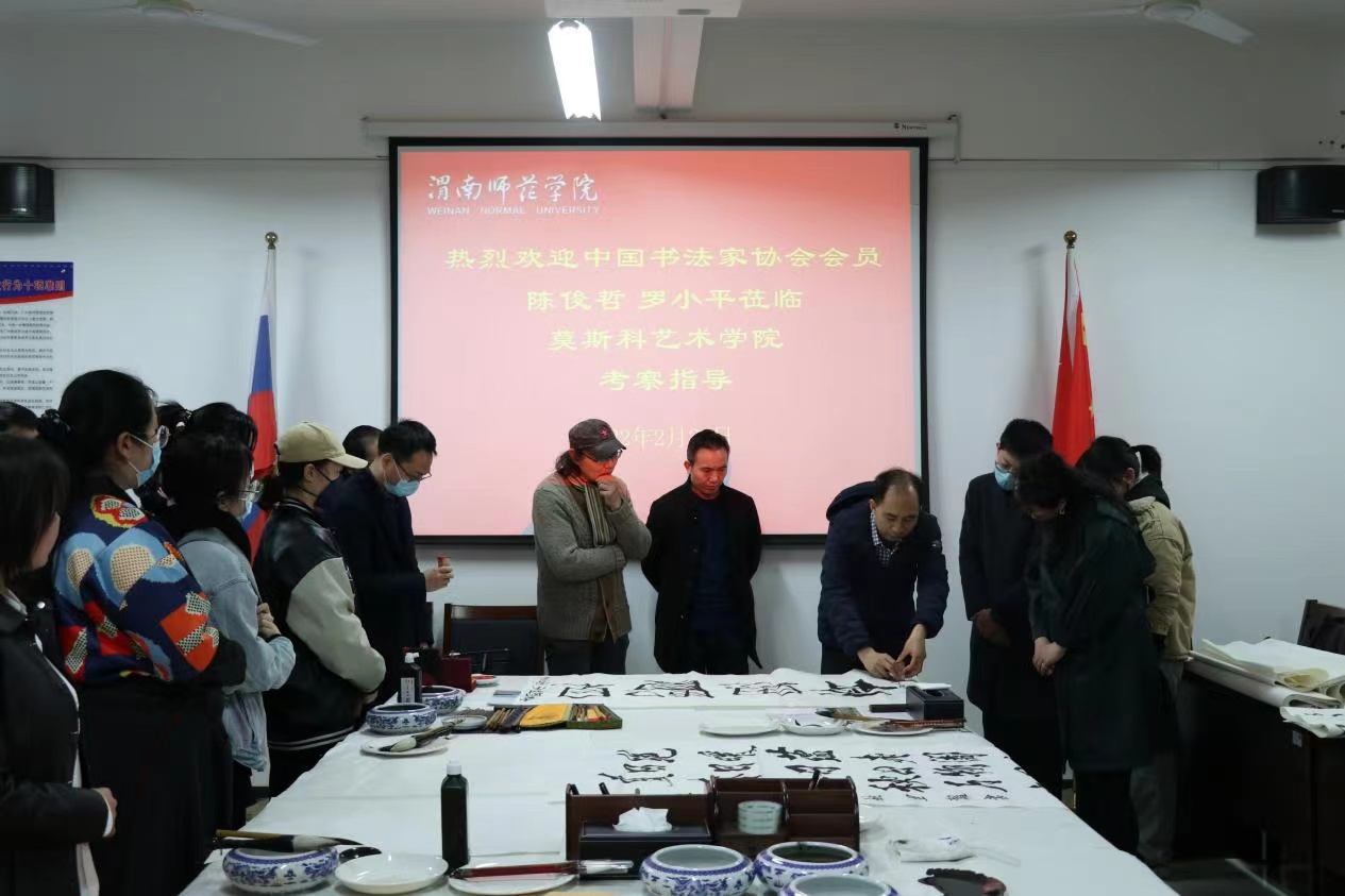 陈俊哲一行在调研中实地深入莫斯科艺术学院,观看了舞蹈编导、大学生老腔艺术团和合唱团排练,考察了音乐厅、排练厅、琴房、数字音乐实验室等教学场地,参观了美术专业师生作品展,高度肯定了学院浓厚的艺术创作氛围和环境育人氛围。