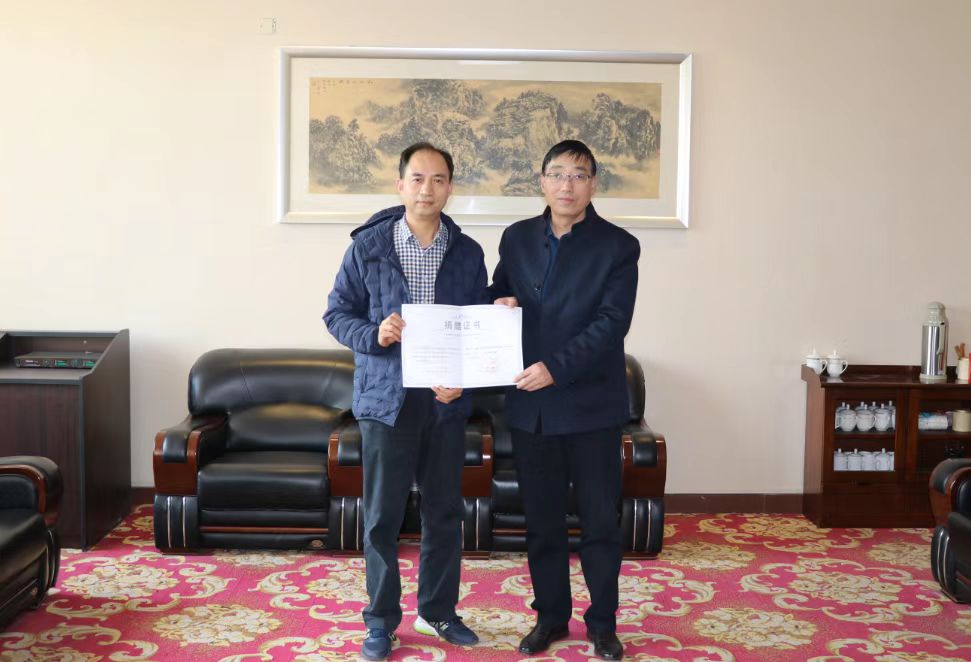 党委副书记韩小卫向渭南市政协主席陈俊哲颁发捐赠证书