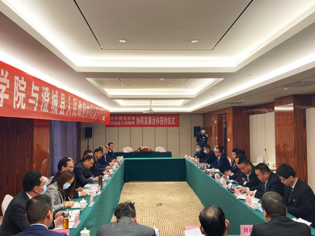 高成文指出,“十四五”是国家高质量发展的重要阶段,澄城县是国家电子商务示范县、全国义务教育均衡县、陕西省乡村振兴扶持县、渭南市唯一获批的革命老区县。针对本次校地合作他要求,要坚定合作信心,充分挖掘澄城文化历史资源。要全力高效推进,全力支持,细化合作项目。要深化合作领域,主动联系,持续推进,长期合作。并祝愿与渭南师范学院的合作能有丰硕成果。