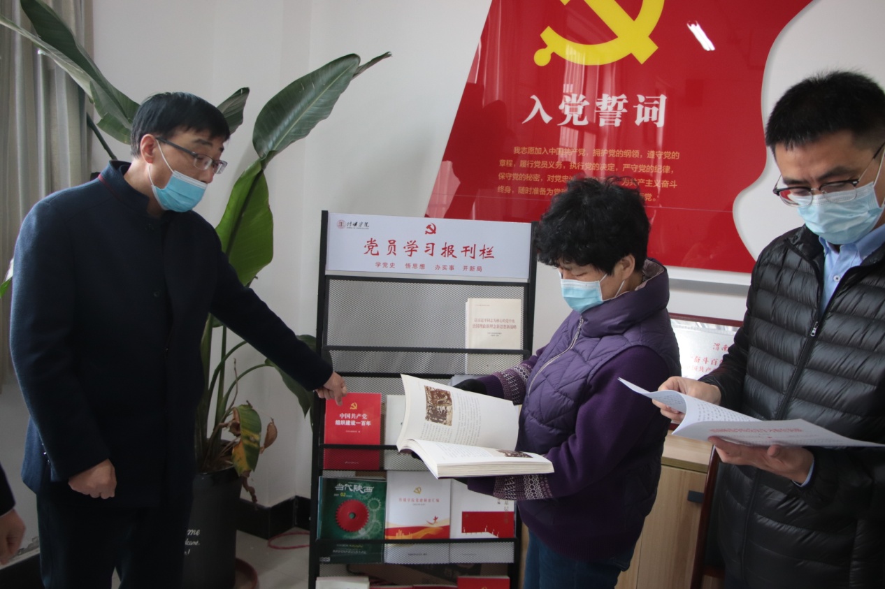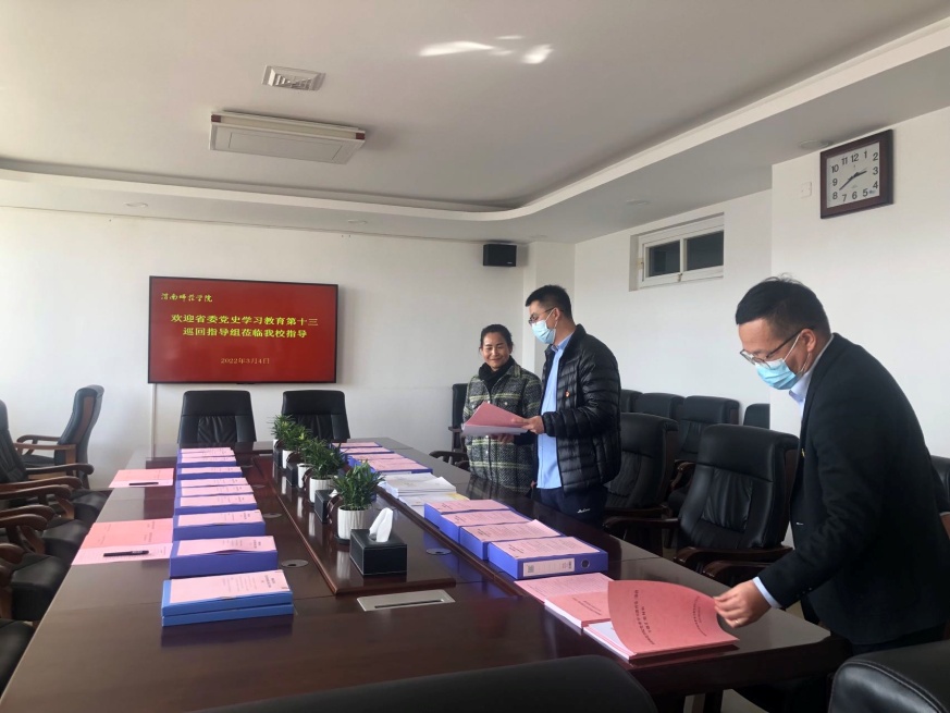在朝阳校区,指导组一行通过听取汇报、查阅资料、调研访谈等方式全面了解我校党史学习教育第三阶段开展情况。党委副书记韩小卫重点围绕深入学习党的十九届六中全会和省委十三届十次全会精神,系统推进“我为师生办实事”实践活动,持续深化“学史悟思想强根铸魂 奋进新时代追赶超越”主题活动,认真做好专题组织生活会问题整改及高质量开好专题民主生活会等方面对第三阶段以来我校党史学习教育作了汇报。在会议室,指导组集中查阅了党史学习教育档案材料、“我为师生办实事”实践活动工作台账以及二级单位党史学习教育特色、亮点和成效。