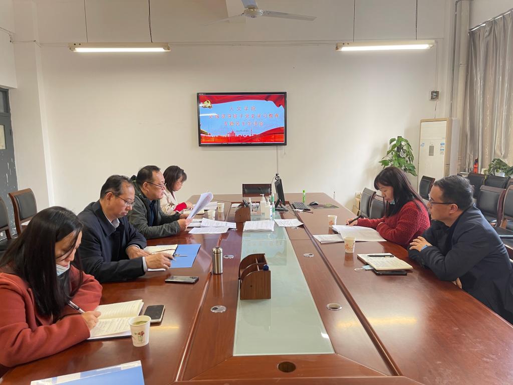 3月9日下午,人文学院党总支召开以“大力弘扬伟大建党精神,坚持和发展党的百年奋斗历史经验,坚定历史自信,践行时代使命,厚植为民情怀,勇于担当作为,团结带领人民群众走好新的赶考之路”为主题的民主生活会。学院处级领导干部参加会议,党委委员、副校长曹强和第一督导组张晓多出席会议。党总支书记李三岗主持会议。