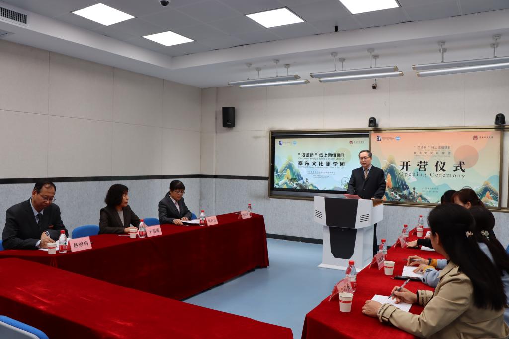3月20日北京时间19:00,由中国教育部中外语言交流合作中心主办、渭南师范学院国际教育学院承办的“汉语桥”线上团组项目——秦东文化研学团开营仪式在逸夫楼师范生技能培训中心顺利举行。研学团以传播“秦东文化”为主题,旨在为海外中文学习者和中国文化爱好者搭建互动交流、深度体验秦东文化,增进友谊的平台。