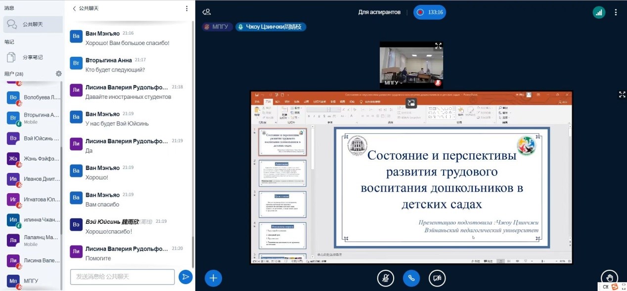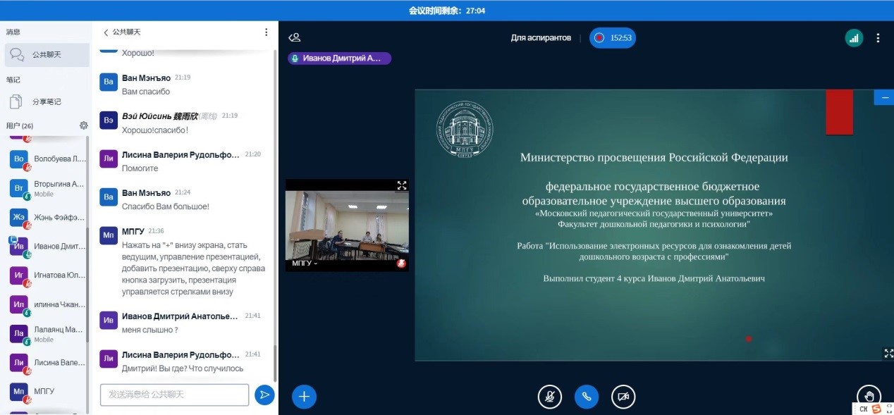 4月21日,我校中外合作办学机构莫斯科艺术学院师生参加莫斯科国立师范大学主办的“学前教育当代研究”国际大学生科研会议,5名学生在研讨会上用俄语作主题发言。