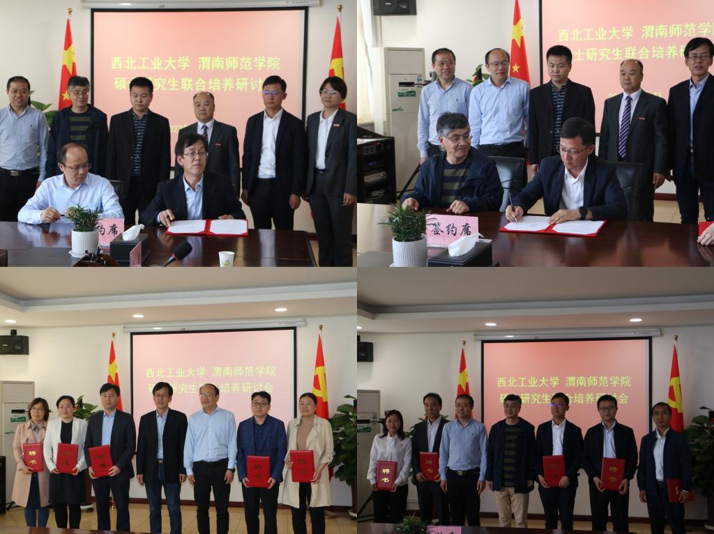 随后,西北工业大学化学与化工学院、数学与统计学院分别与我校化学与材料学院、数学与统计学院签署《西北工业大学——渭南师范学院联合培养硕士研究生协议》,并为硕士生指导教师王冬华、刘展晴、刘艳、付新、杨珊、陈斌、戴磊、赵教练、余保民、屈改珠等教师颁发聘书。