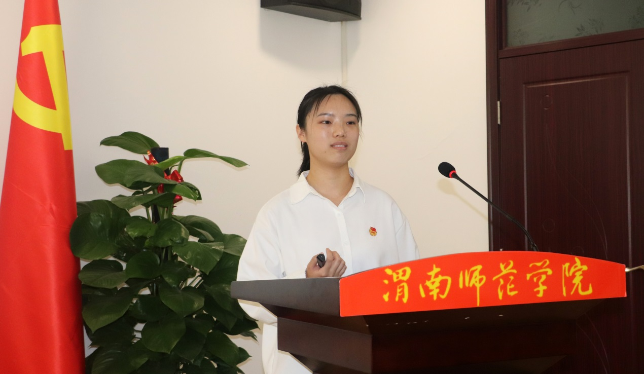 仪式上,计算机学院“大学生头雁领航团队”学生代表、2019级朱子慧同学作2022年渭南师范学院第三届网络安全技能大赛成果展示。她从网络安全技能大赛宣讲活动、知识竞赛、作品征集、征集调查问卷四个方面,通过丰富的图片展示、详实的数据统计与分析等进行了全面细致的总结。