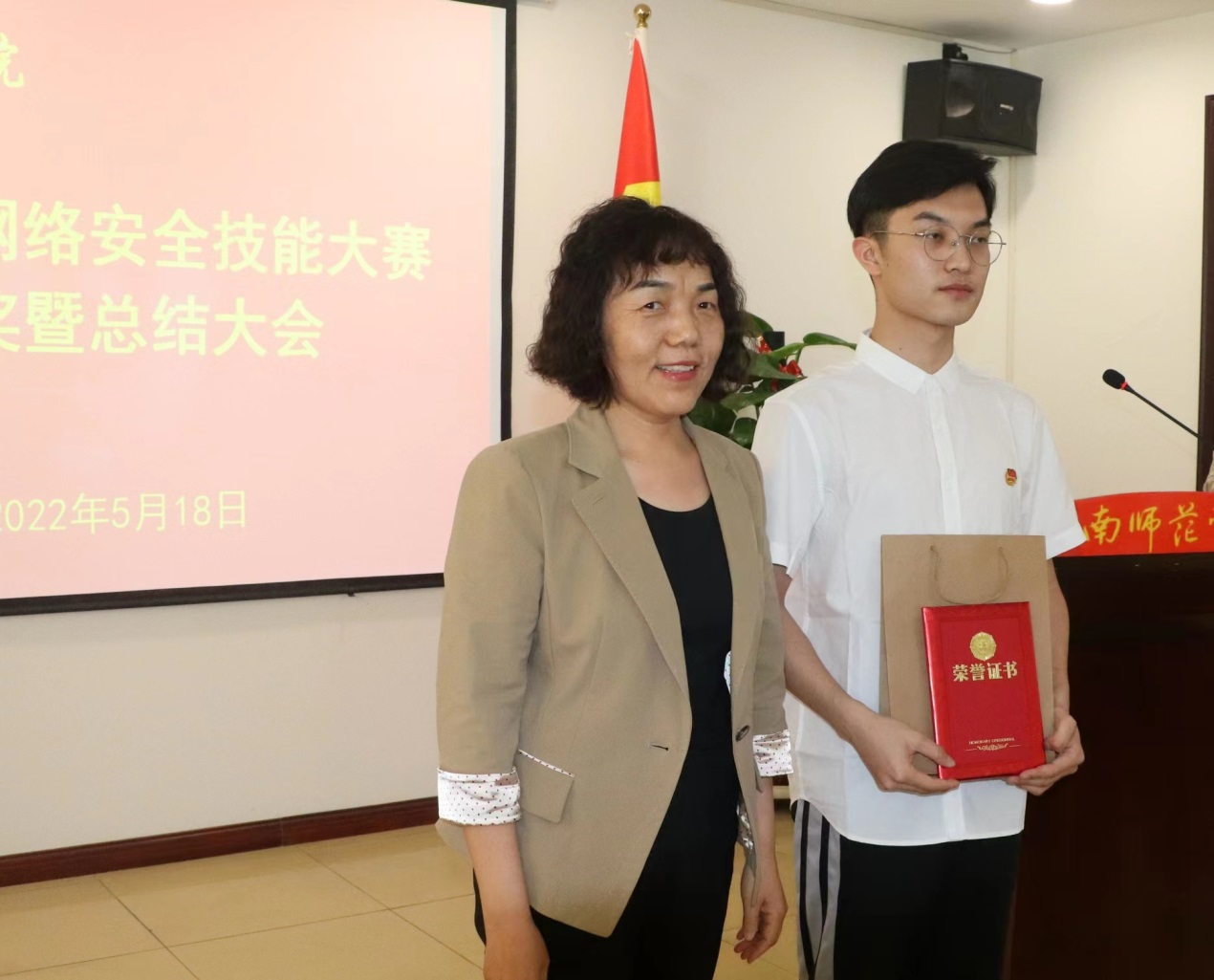 5月18日下午,由学校团委主办、计算机学院承办的渭南师范学院第三届网络安全技能大赛颁奖暨总结大会在厚德楼第二会议室举行。学校党委书记卓宇、党委副书记汪勇、副校长王菊霞出席大会,团委副书记肖飞、计算机学院党政负责人、各专业建设负责人、获奖学生等参加大会。大会由计算机学院党总支副书记武楠主持。