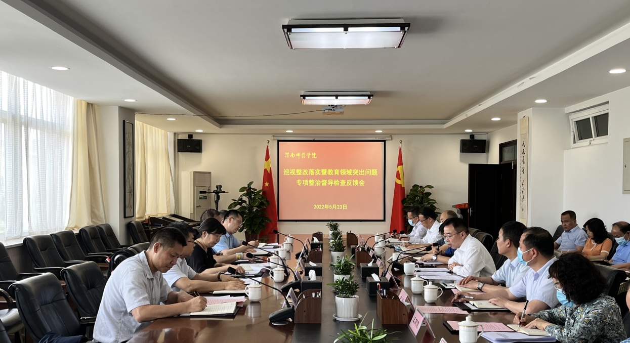 5月23日上午,陕西教育领域突出问题专项整治督导检查组组长赵军一行6人来我校督导检查巡视整改落实暨教育领域突出问题专项整治工作,在厚德楼第二会议室听取了巡视整改落实暨教育领域突出问题专项整治阶段性整改情况工作汇报,检查了整改整治工作资料,访谈了相关人员,反馈了督导检查意见。学校巡视整改落实暨教育领域专项整治工作领导小组成员出席汇报会和反馈会。会议由党委副书记、校长、学校巡视整改落实暨教育领域突出问题专项整治工作领导小组组长张守华主持。