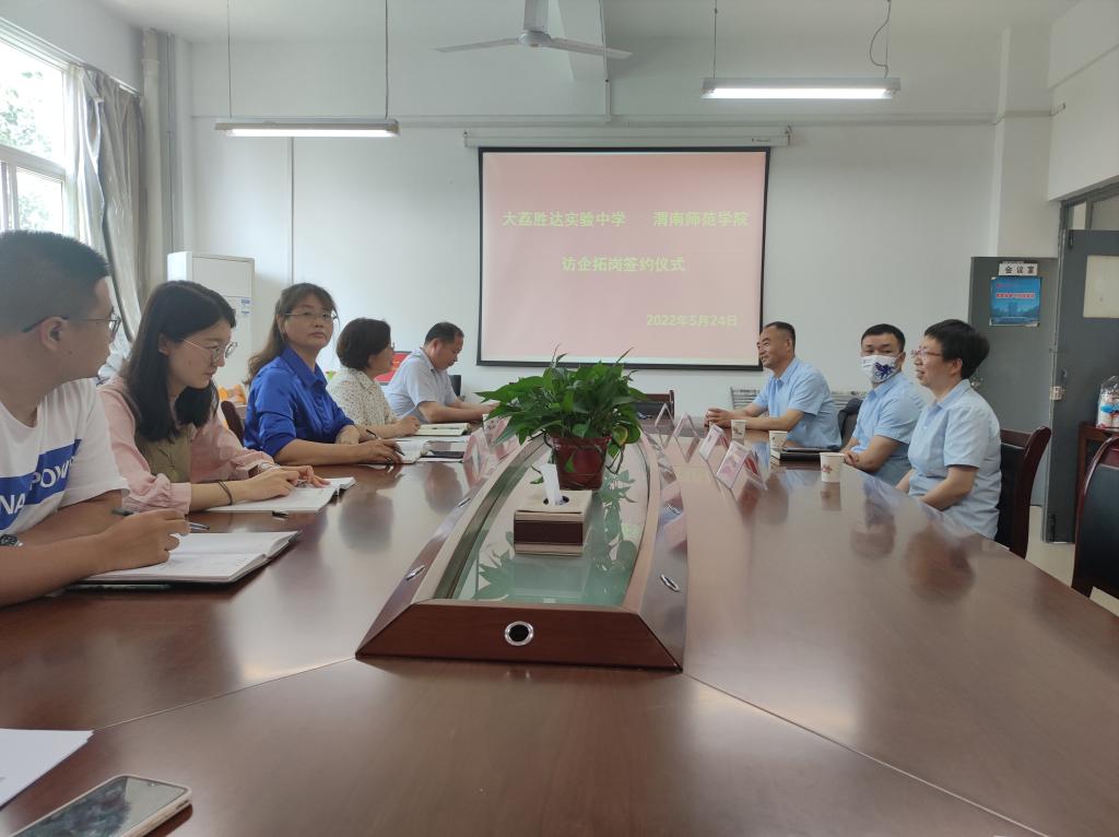 随后,汪勇为大荔胜达实验中学授牌,张晓玲与陈建荣签订了《共建大学生就业基地协议书》。