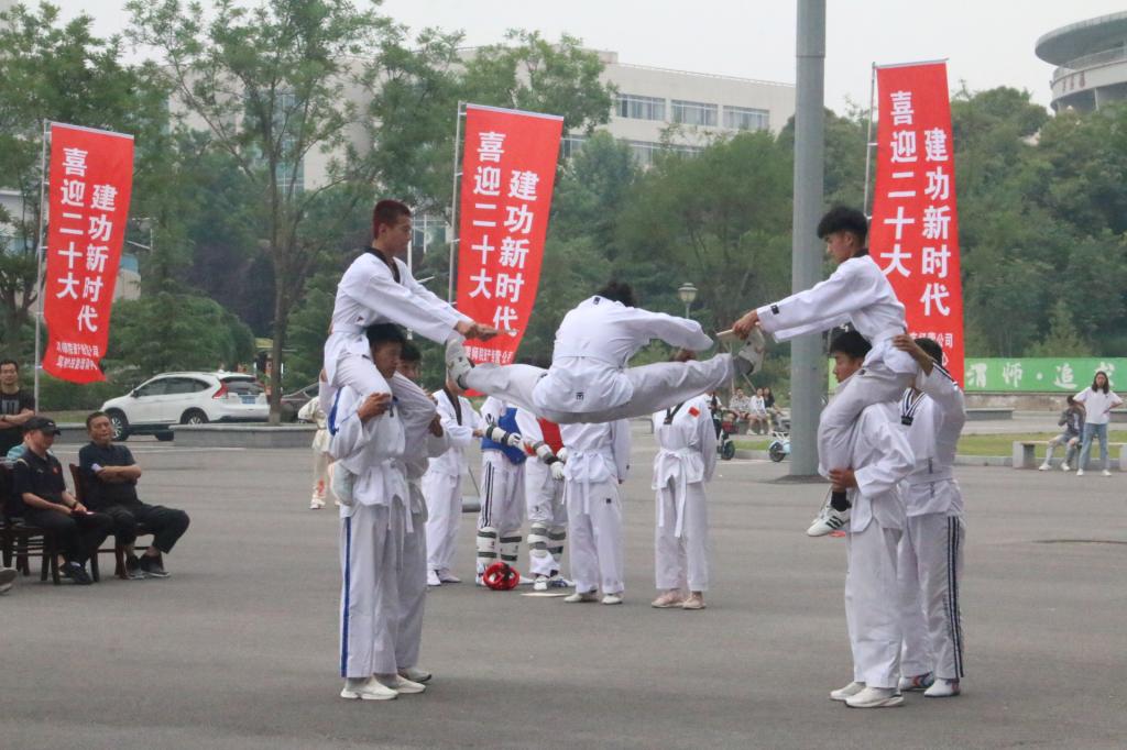仪式结束后,全体参会人员共同观看由体育学院2020级和2019级学生带来精彩的跆拳道、健美操和武术表演。