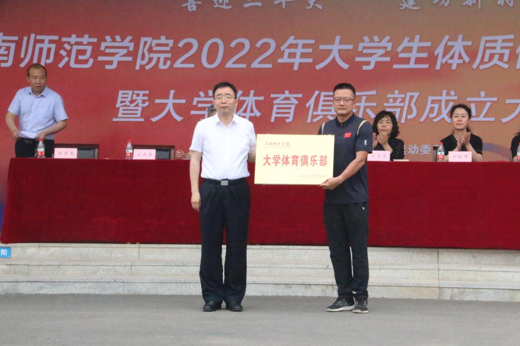 大会上,张守华为渭南师范学院大学生体育俱乐部授牌。