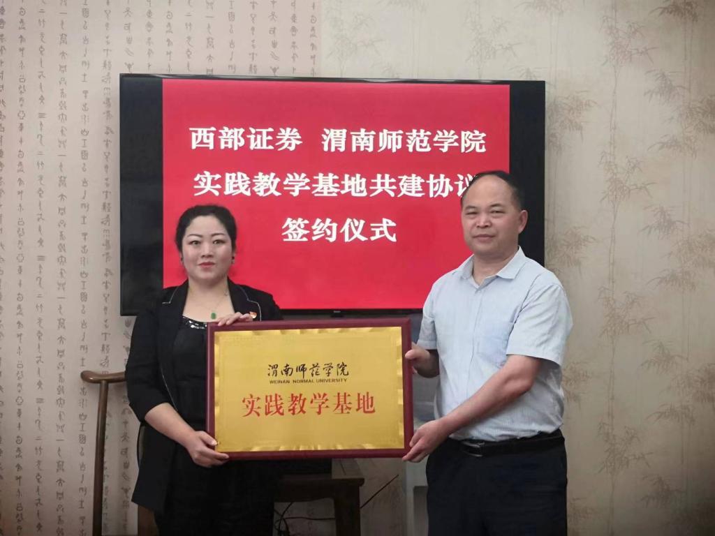随后,凌朝栋一行到西部证券股份有限公司渭南杜化路证券营业部调研座谈并签订大学生实践教学基地协议。