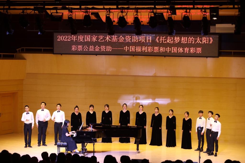 当晚,我校音乐学院联合西安音乐学院作曲系举办2022年度国家基金资助《托起梦想的太阳》彩票公益金资助——中国福利彩票和中国体育彩票音乐会。西安音乐学院党委副书记李宝杰、王刚,纪委副书记全勇,我校校长张守华,副校长卢爱刚、曹强等出席音乐会现场观看。