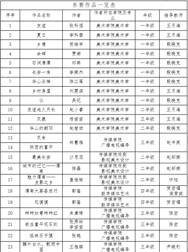近日,经陕西省人民对外友好协会、渭南市人民对外友好协会邀请,我校国际合作与交流处会同教务处、美术学院、传媒学院等单位,组织在校生参加了“韩国庆尚北道—中国友好城市绘画、影像作品征集大赛”活动,共向主办单位报送《友谊》等12件手绘画作品、《双食》等5件数字绘画作品,以及《我在富平观石刻》等6件影像作品。
