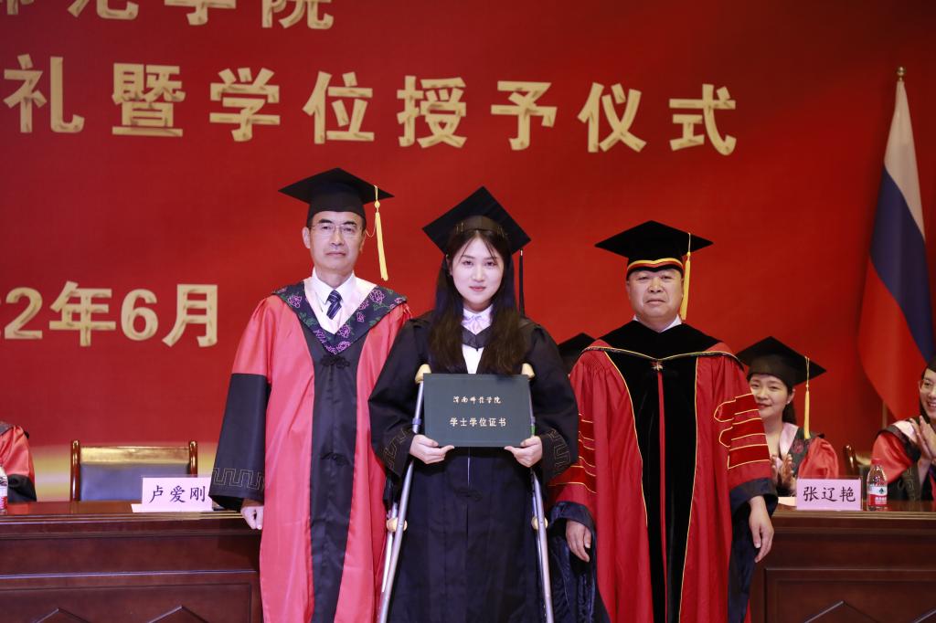 石明宣读了关于表彰省级和校级优秀毕业生、优秀学生干部的决定,以及在校期间获得奖助学金学生名单。2022届毕业生中有3人被评为省级优秀毕业生,14人被评为校级优秀毕业生,3人被评为校级优秀学生干部,10人获助建档立卡。主席台领导为受表彰者颁发荣誉证书。
