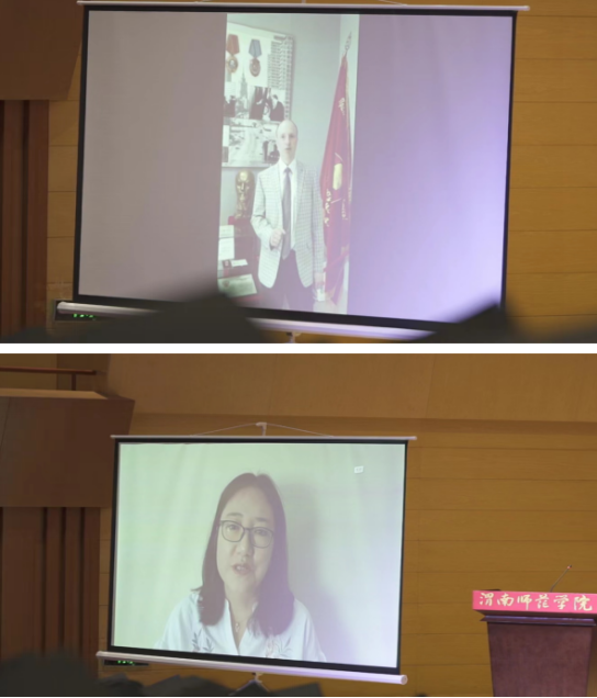 毕业典礼在庄严的国歌声中拉开序幕。俄罗斯莫斯科国立师范大学俄中统筹中心主任、莫斯科艺术学院俄方副院长尤金先生,俄中统筹中心副主任张曌煜女士向毕业生在线致辞,并表示,从学生们手中的画笔,看到了希望,看到了未来,描绘了生活的美好,传递人世间的真善美,祝贺大家顺利完成学业,向为同学们成长成才呕心沥血、辛勤付出的老师表示衷心感谢,欢迎更多的学子继续升学深造,真诚地祝愿2022届毕业生有一个光明而美好的未来。