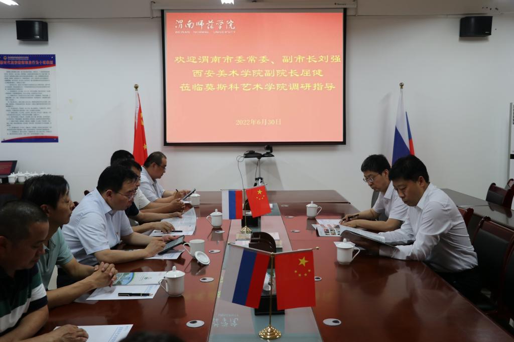 6月30日下午,渭南市委常委、副市长刘强,西安美术学院副院长屈健一行来我校调研交流,深入了解我校艺术类专业人才培养及申硕情况。校长张守华,相关单位负责同志陪同调研。