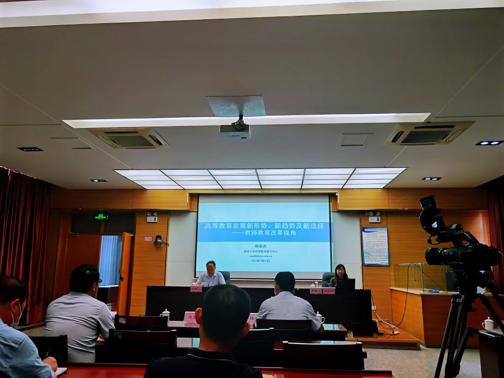 7月13日下午,西北大学高等教育研究中心主任、中国高等教育学会理事,陕西高等教育学会副会长、陕西高等教育研究与评估中心副主任、博士生导师姚聪莉教授为我校干部做专题报告。报告会设科学大讲堂主会场,厚德楼第二会议室和一号教学楼1101教室两个分会场。党委副书记韩小卫,党委委员、宣传部部长李明敏及全体处科级干部参加报告会。报告会由党委委员、组织部部长凌朝栋主持。