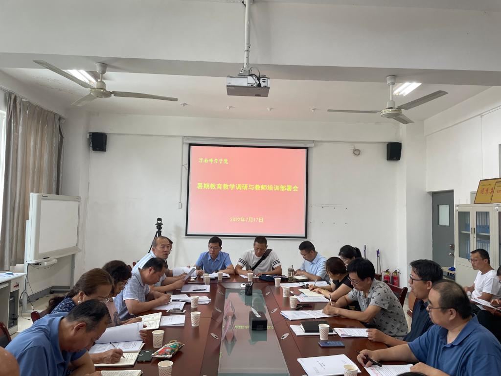会上,孙宏恩解读了《关于2022年暑期教学工作调研与教师教学培训的通知》,重点说明了教学工作调研的主要内容,对教师培训作了安排。教学质量监控与评估处处长张郭军就做好师范专业认证调研及各项准备工作进行了强调说明。各学院院长结合本学院学科专业特点和教学工作实际,对做好调研和教师培训从各自角度提出了建议。