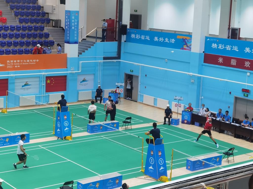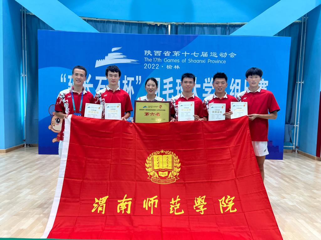 陕西省第十七届运动会首次设置大学生组比赛,以获得决赛资格的32所高校为单位组队参赛,设篮球、足球、羽毛球、乒乓球4个大项。来自西北工业大学、陕西师范大学、陕西理工大学、渭南师范学院等高校的273名大学生运动员参加羽毛球大学生组比赛,比赛在陕西省榆林市米脂县综合馆举行。我校本次参赛代表队由体育学院院长王居海担任领队、肖欢担任教练员、六名运动员组队参赛。通过努力拼搏,秦仕灏、薛杰、胡伟龙、岳祥猛、房龙浩、王兆松共同荣获男子乙组团体第六名佳绩。