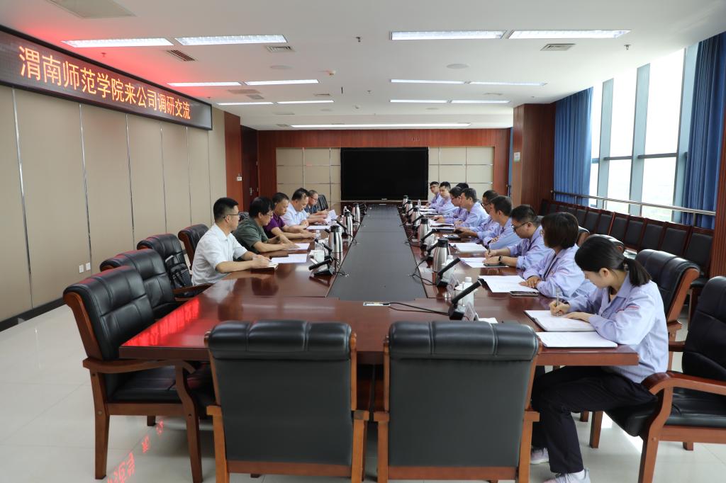 科学研究处处长王双喜处长就我校科研基本情况、双碳研究院筹备情况进行了介绍,希望加强校企合作,在企业双碳转型上,结合十四五、双碳目标落实做好服务地方的应用型工作;化学与材料学院院长焦更生回顾了蒲城清洁能源化工有限公司与我校的合作历史,对我校目前化学与能源方面的师资、科研、人才培养进行了详细介绍,同时提出了科研人才共享、科研合作等方面的框架性意见;化学与材料学院党总支书记韩城忠就我校学生就业、实习方面合作进行了深度对接,落实了以后相关专业学生实习、就业的事宜。