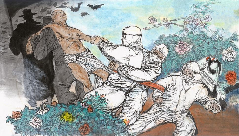 《出征》(纸本水墨六尺)