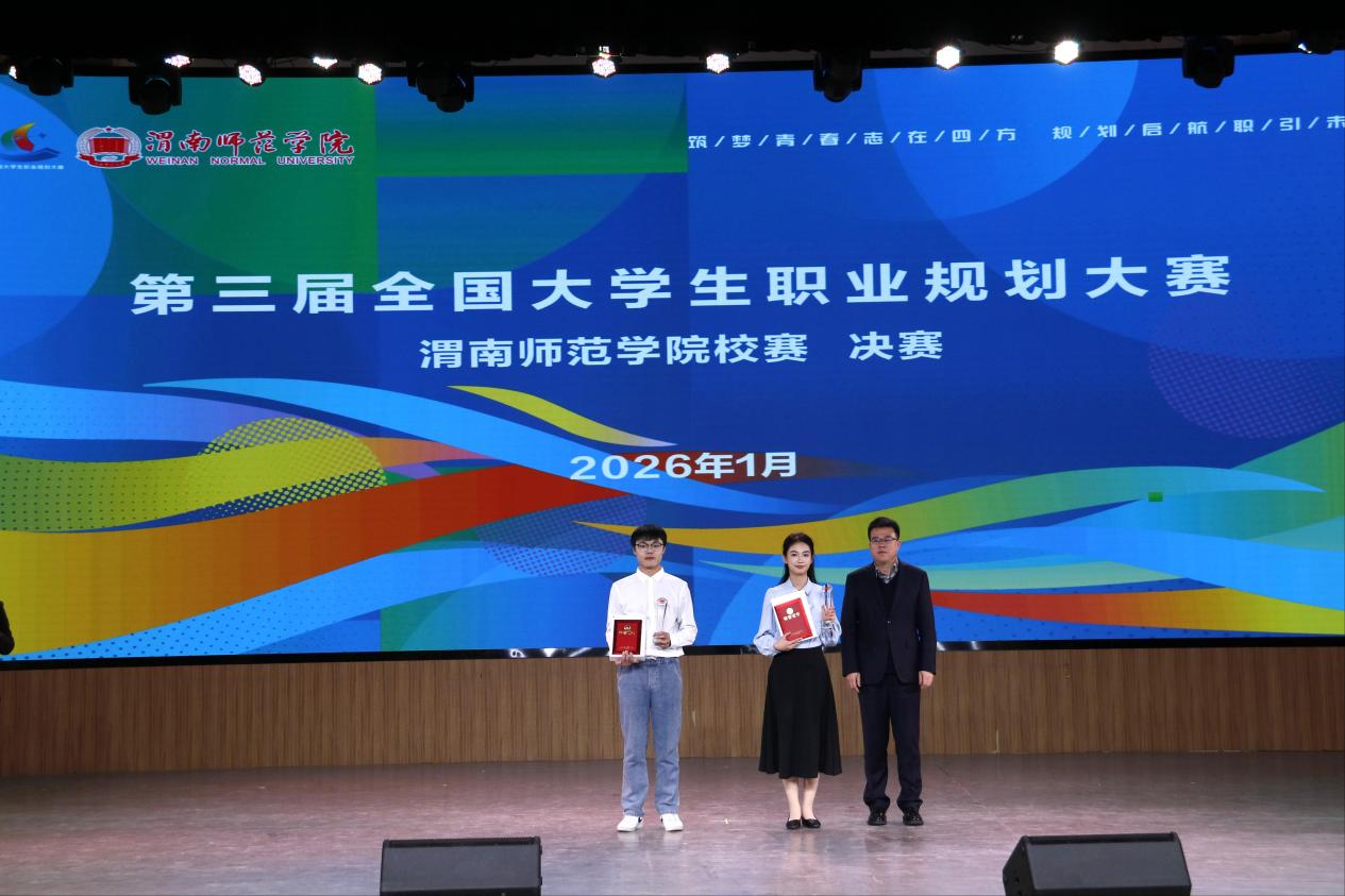 本次大赛以“筑梦青春志在四方,规划启航职引未来”为主题,自启动以来,得到了全校各二级学院的积极响应和广大学生的踊跃参与,共有一万余名学生参赛。大赛分为成长赛道和就业赛道两个赛道,经过前期15个二级学院初赛、校级复赛,最终12名选手晋级校级决赛。本次比赛邀请西北大学就业创业指导服务中心常务副主任丁莹莹、陕西铁路工程职业技术学院就业指导中心主任姜留涛、陕西丰泽实业有限公司人力资源部经理吕陇苹、中国移动渭南分公司人力资源部张伟、渭南荣耀科技传媒有限责任公司行政主管石炎炎等5名校外专家担任大赛评委。
