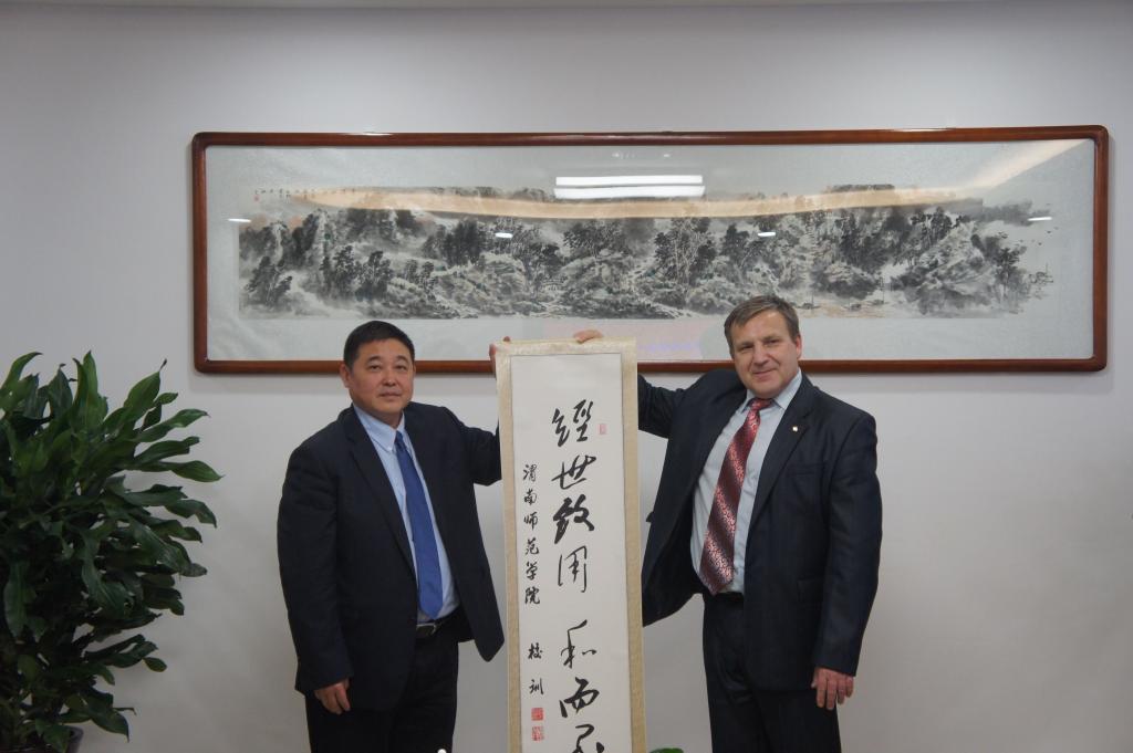 会后,双方互赠礼物,莫斯科国立师范大学副校长瓦西里·维亚切斯拉夫维奇·斯特拉霍夫向我校赠送了俄罗斯寓意深厚的工艺品以及莫斯科国立师范大学的校旗;院长卓宇向莫师大赠送了“经世致用,和而不同”的学校校训书法条幅。(通讯员 贺星蓓 屈蓉)