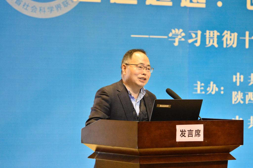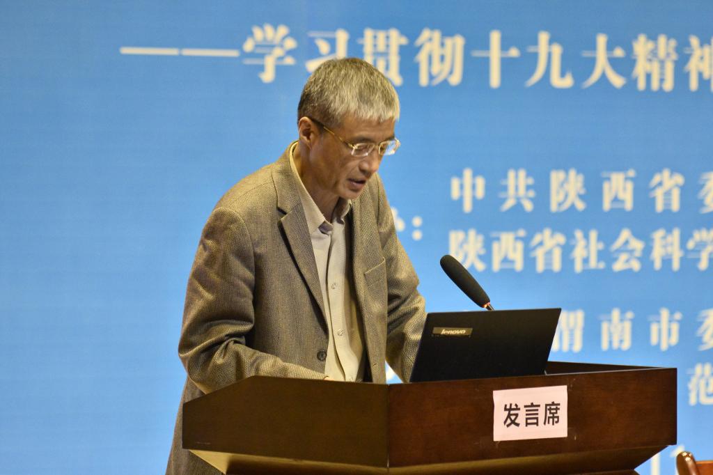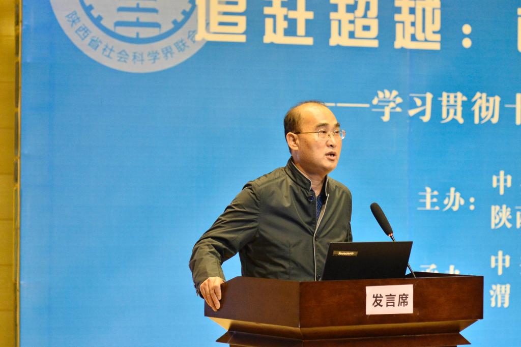 西安交通大学教授杨东朗做了大会报告。他在报告中回顾了十八大以来我国经济社会发展取得的成就,阐述了陕西“追赶超越”的优势,提出了我省发展的战略,即深化供给侧结构性改革、加快建设创新省份、实施乡村振兴战略、实施区域协调发展战略、加快完善社会主义市场经济体制,并推动形成全面开放新格局。