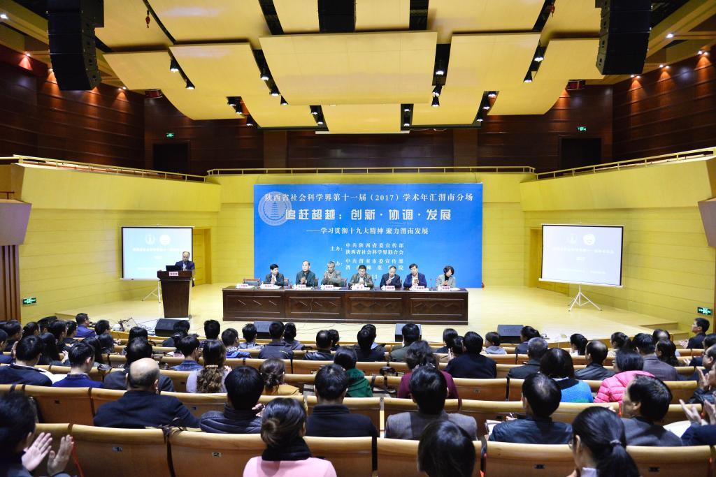11月10日上午,主题为“追赶超越:创新•协调•发展——学习贯彻十九大精神 聚力渭南发展”的陕西省社科界第十一届学术年汇渭南分场在我校逸夫楼华金音乐厅隆重举行。本次会议由陕西省委宣传部和陕西省社会科学界联合会共同主办,渭南市委宣传部和我校共同承办。会议由副院长卢爱刚主持。