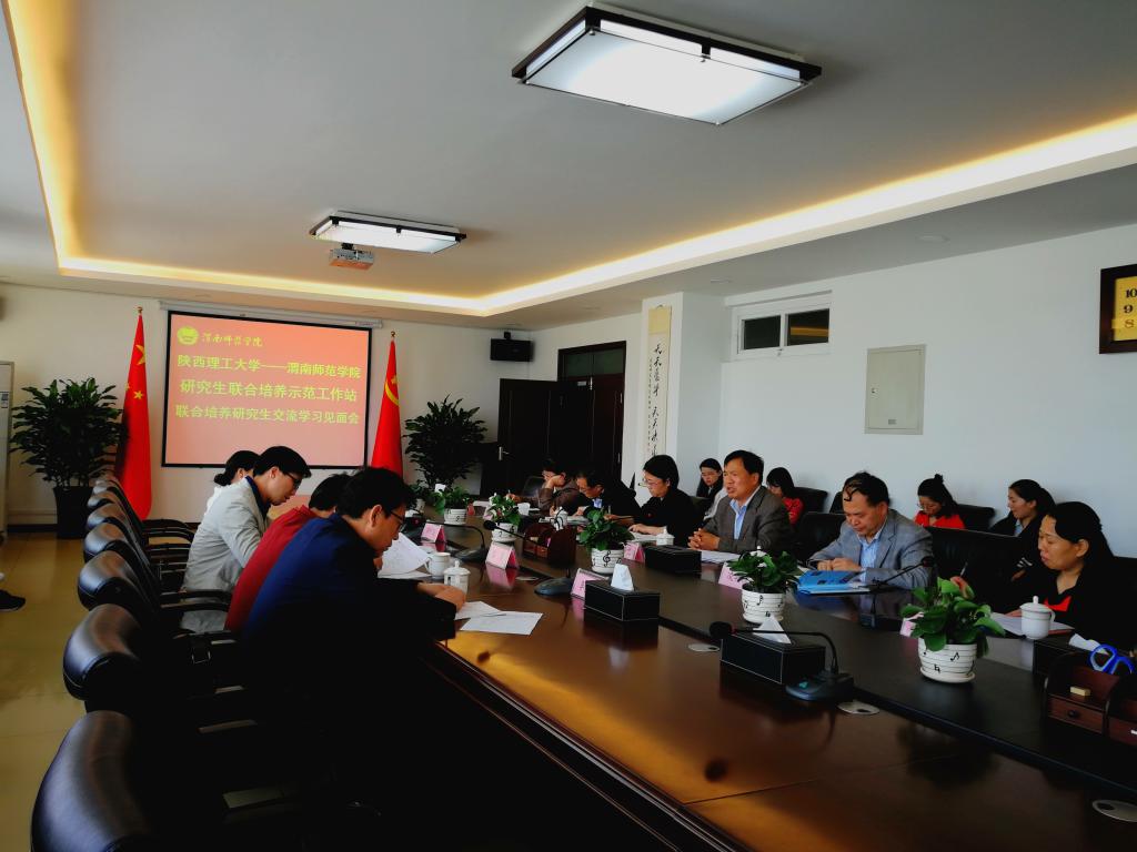 4月17日下午,陕西理工大学—渭南师范学院研究生联合培养示范工作站联合培养研究生交流学习见面会在厚德楼第二会议室举行,副院长李海龙出席会议。陕西理工大学研究生处处长雷勇、文学院院长李宜蓬、文学院研究生导师蔡美云、研究生秘书崔科飞,我校人文学院院长凌朝栋、副院长韩艳秋、研究生指导教师曹强、王晓红、雷炳峰等人以及陕西理工大学17名交流学习的学生参加了会议。会议由学科建设办公室主任袁梁主持。