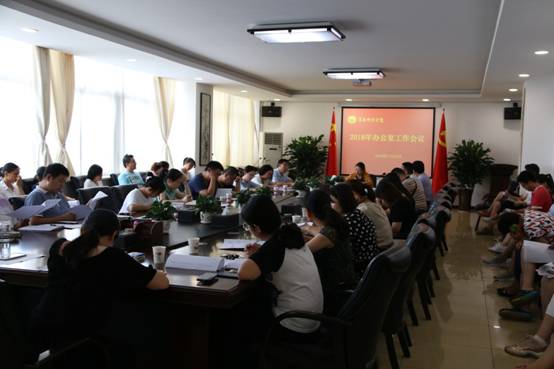 7月12日下午,我校在厚德楼四楼第二会议室召开2018年办公室工作会议,副院长权雅宁出席会议并讲话,院长助理、党政办公室主任韩小卫,稳定安全办公室主任、党政办公室副主任李铁丁,各单位办公室业务负责人等同志参加了会议。会议由郭石磊主持。