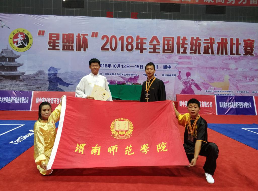 10月13日至15日,2018年全国传统武术比赛在四川省阆中市体育运动中心隆重举行。经过激烈角逐,我校武术队喜获一银三铜的优异成绩。