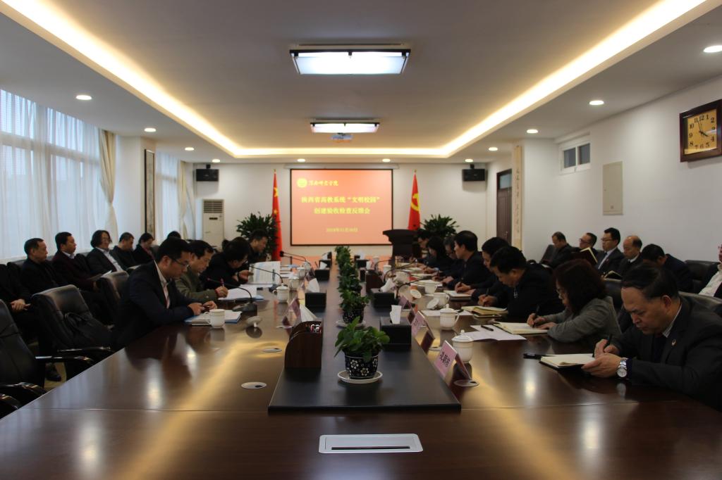 11月16日,陕西省高教系统“文明校园”创建验收专家组莅临我校验收“文明校园”创建工作。专家组由西北大学党委常委、宣传部部长田明纲,西安工程大学国内合作与校友工作处处长杨永革,西安理工大学马克思主义学院院长、教授、博导鲁宽民,西安外国语大学党委委员、宣传部部长赵沛,西安体育学院宣传部部长高月宏组成。