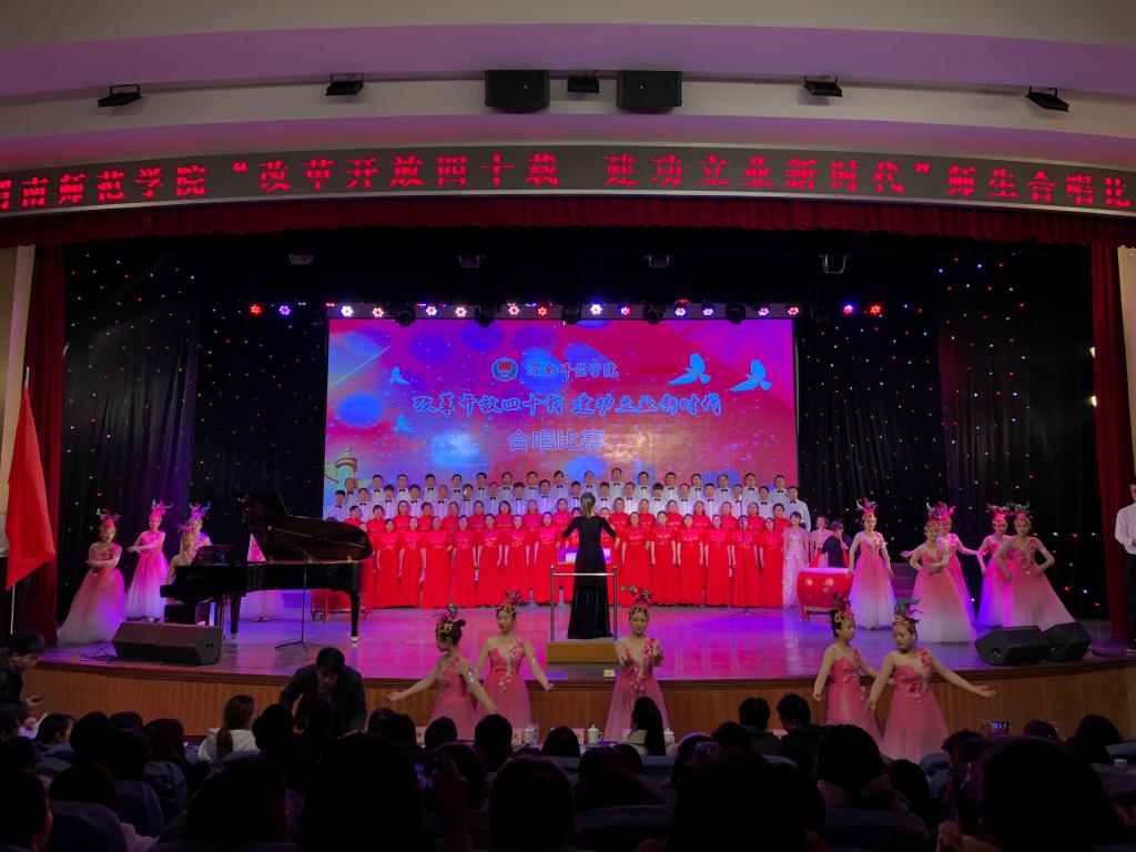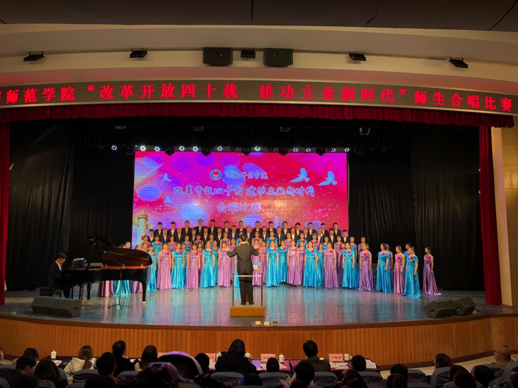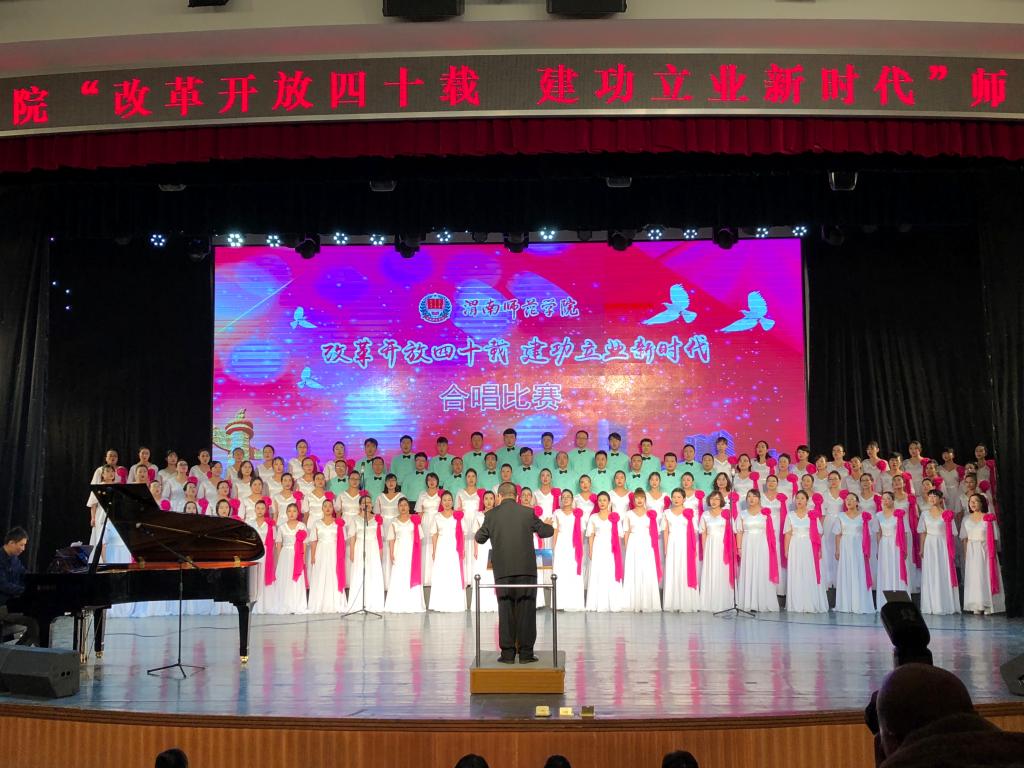 此次合唱比赛以“改革开放四十载 建功立业新时代”为主题,突出全员性、群众性,从校领导到普通教职工,从教师到学生,从行政部门到二级学院,各单位都积极参与其中。《走向复兴》《在希望的田野上》《再唱山歌给党听》《春天的故事》《歌唱祖国》《不忘初心》《中国进入新时代》等一首首脍炙人口、广为传唱的红色歌曲响彻校园。