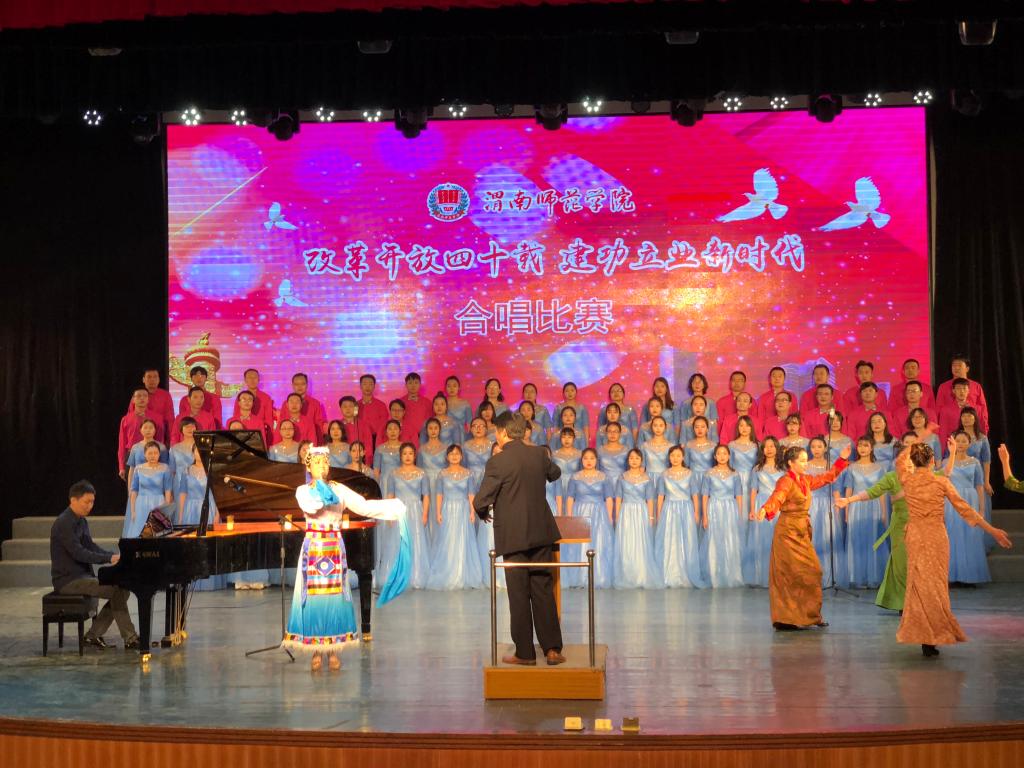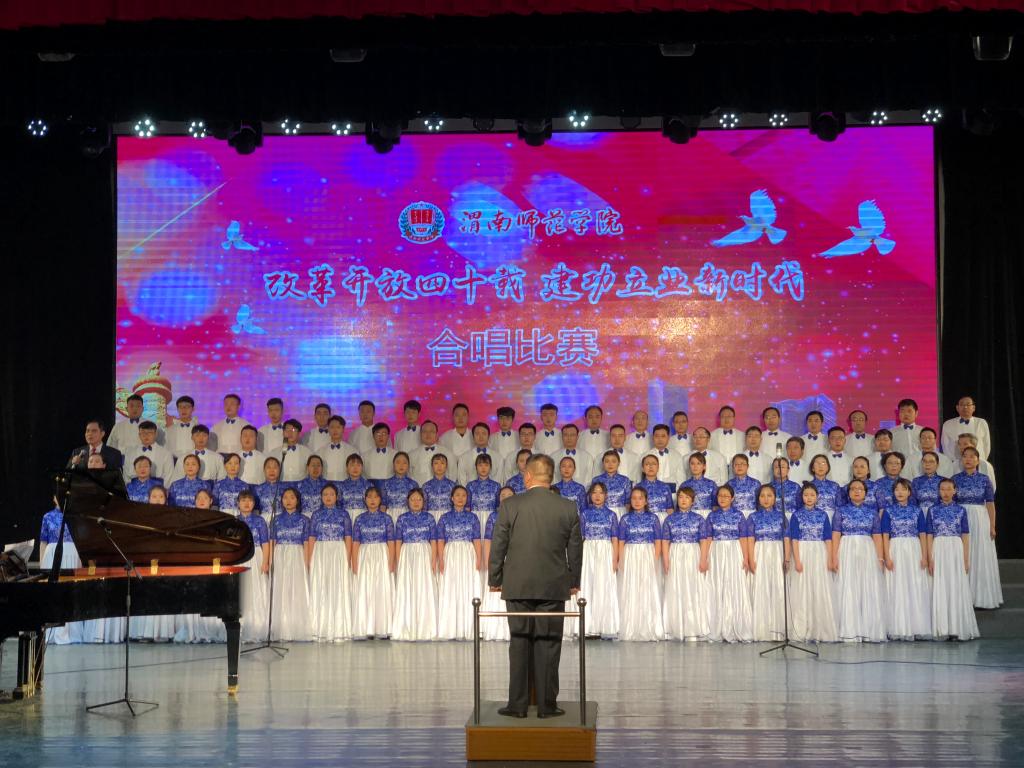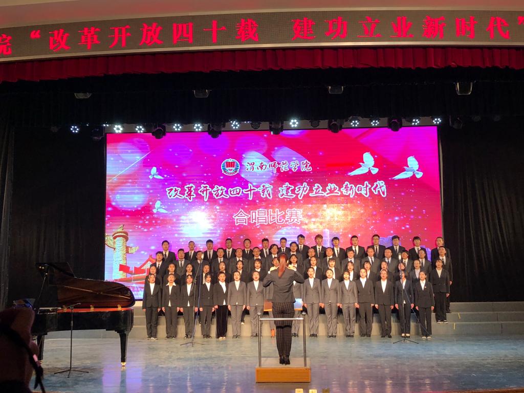 本次合唱比赛由中共渭南师范学院委员会主办,党委宣传部、校团委承办,比赛旨在深入贯彻落实党的十九大精神和习近平新时代中国特色社会主义思想,引领师生深刻认识改革开放40年来波澜壮阔的伟大历史进程,增强师生的责任感和使命感,营造积极健康、特色鲜明的校园文化氛围。(通讯员 晋彤 谢丽娜)