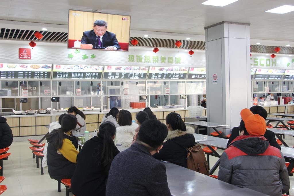 12月18日上午10时,庆祝改革开放40周年大会在人民大会堂举行。我校全体师生员工热切关注,各二级单位党委、党总支、直属党支部分别在18个分会场组织师生第一时间通过广播、电视、网络等多种途径、多种形式观看大会直播,参与观看教职工达650人。学校领导班子成员带头在厚德楼四楼会议室机关一总支分会场集中收看直播盛况。