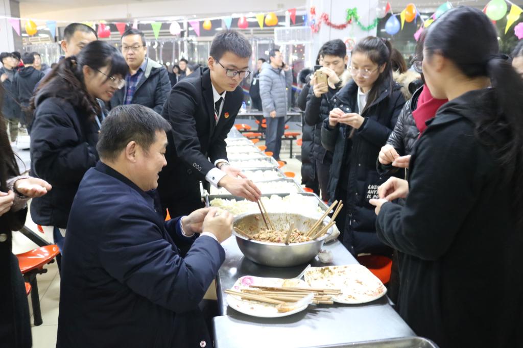 12月21日,冬至前夕,学校一餐厅挂满彩色装饰,充满欢声笑语,这里此时已变成学校迎新年游艺会的现场。学校组织建档立卡家庭经济困难学生、少数民族学生和外省籍学生等190多名学生与教师共聚一堂,以包饺子、做游戏、看曲艺等形式共同迎接冬至和新年。
